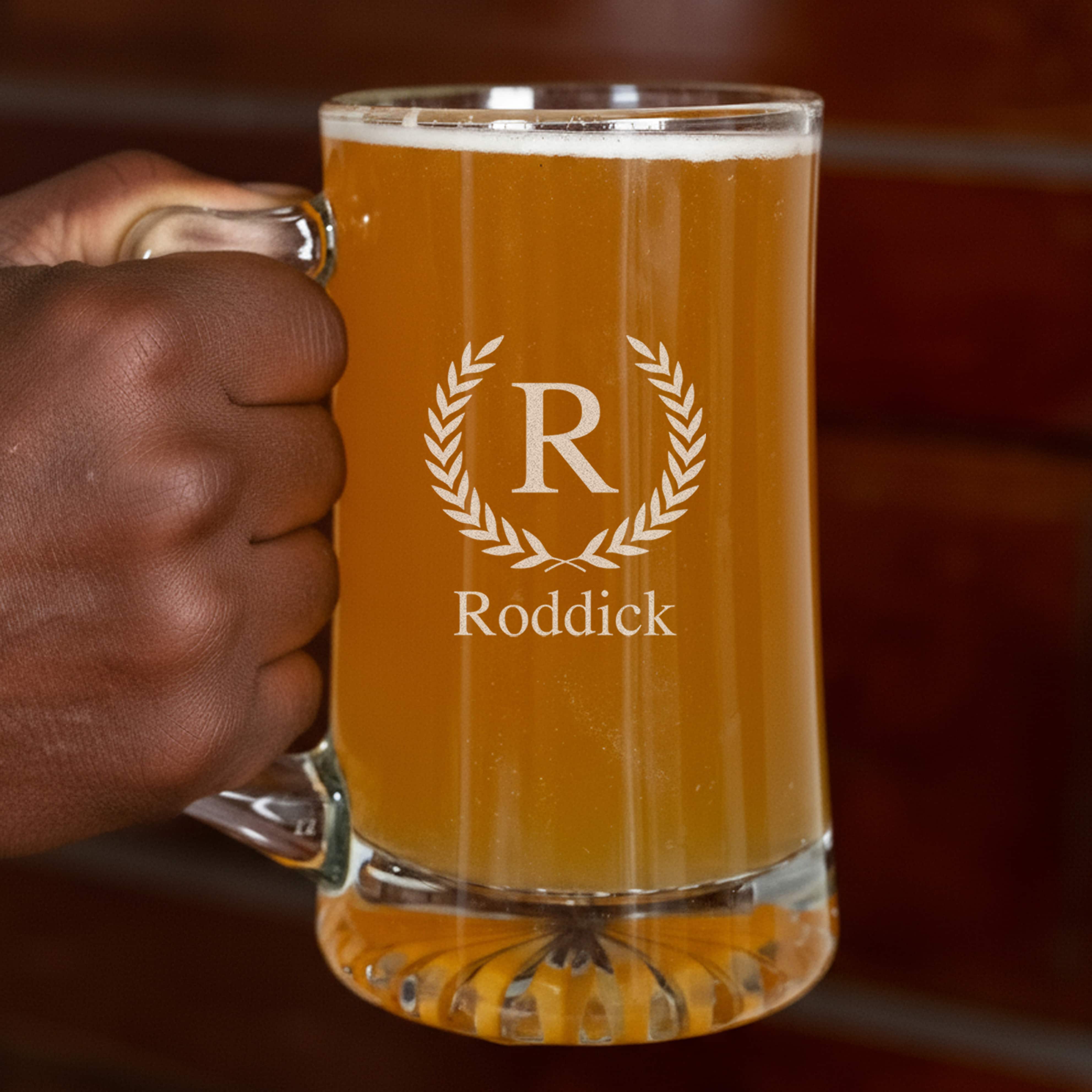 Our Personalized 25oz. Classic Beer Mug is crafted with a comfortable handle and weighted bottom. It holds 25oz. of your favorite frosty adult beverage. It’s the perfect for groomsmen, Father’s Day gift or Christmas gift for the beer-lover on your shopping list. Don’t forget to add personalization (no extra cost). We’ll laser engrave a name or message on the front so this gift will be remembered forever.