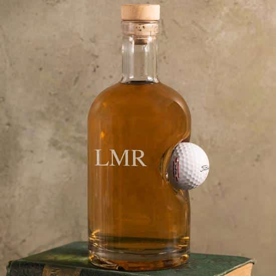 Our personalized 750mL. Golf Ball in Decanter is a hole-in-one gift idea for your groomsmen! The custom decanter features a Titleist golf ball “stuck” in the glass for a totally unique look. Dishwasher safe and easy to pour from, it’s great for filling up with your favorite bourbon and celebrating a great round of golf. Dads, brothers and husbands alike will all love adding one to their glassware collection.