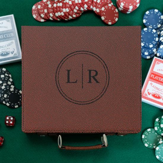 The true standout feature of this poker chip set is the customizable leather carrying case. The case is available in black, brown, grey, football and basketball colors. We believe that personalization adds a special touch to any gift, and that’s why we offer complimentary laser engraving of the recipient’s name, initials, monogram, or your own custom text. The engraved leather case not only showcases your thoughtfulness but also provides a unique storage and transportation solution for the entire set. Whether you’re looking for a memorable groomsmen gift or a unique way to propose to your groomsmen, this personalized poker chip set is the perfect choice.